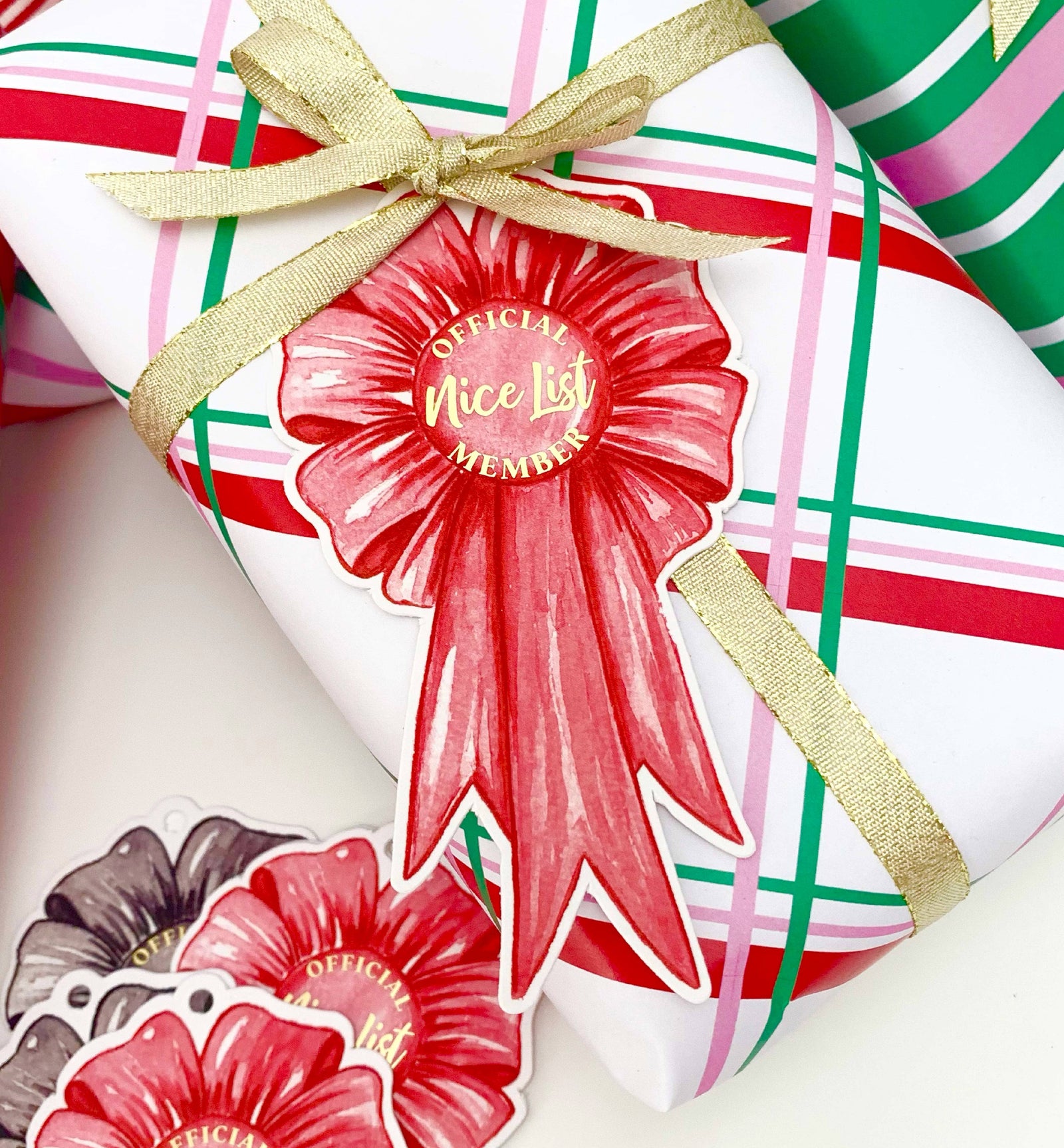 Nice List Member Rosette Christmas Gift Tags - Set of 6