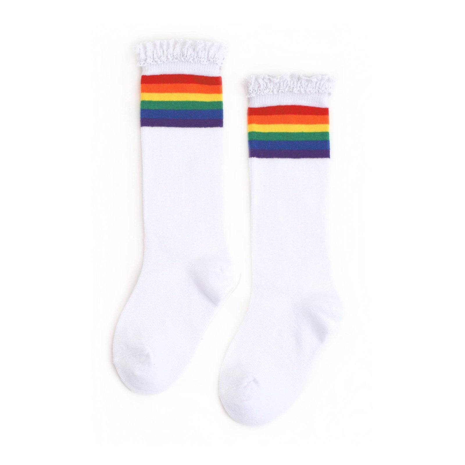Rainbow Stripe Lace Top Knee High Socks