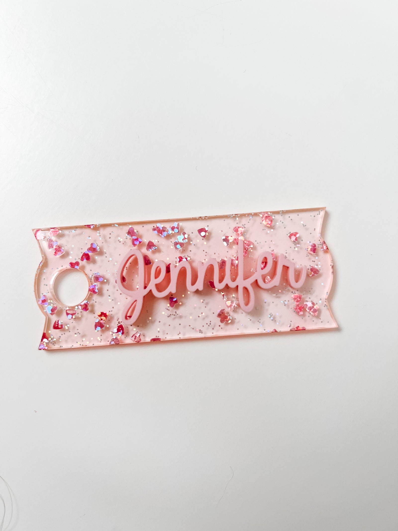 Tumbler Name Plate- Pink Glitter Heart with Name